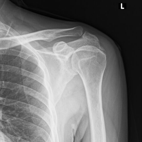 左肩関節の痛みが強く、一切の挙上ができないため来院。